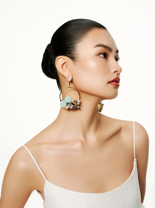 「The Window Harbors Autumn Blooms」 Emeralds & Agate Earrings