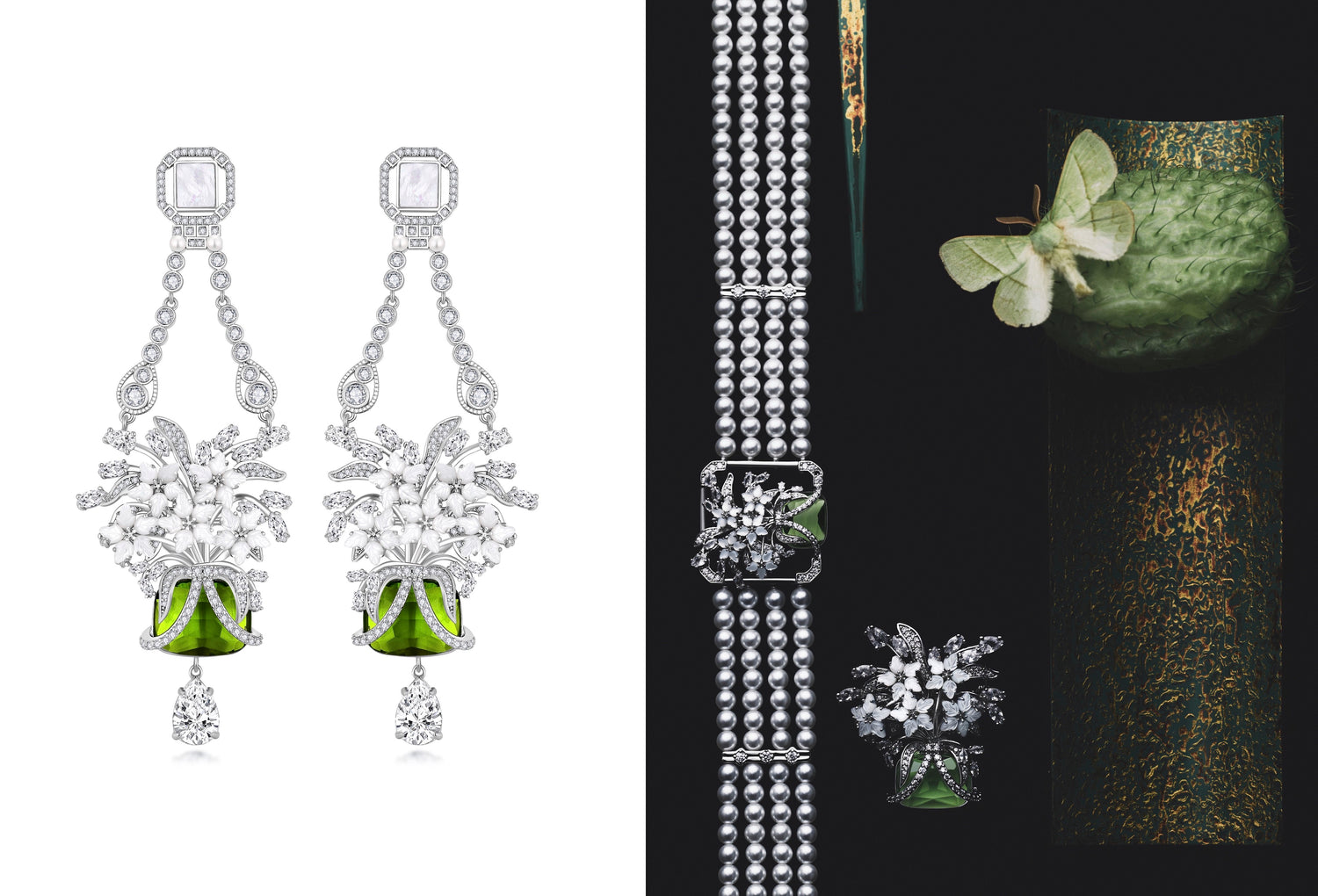 Flowers have always been a favored design element for the designer Johnny Gengyi Yu. In this collaborative collection, the rich green iridescence of Gemfields Zambian emeralds shines amidst the serene natural black agate, exuding exquisite beauty with a unique and tranquil Oriental elegance. Whether depicting the blossoming of autumn flowers in a nocturnal window scene, the graceful orchids in the gentle breeze, or the pure elegance of narcissus in a vase, these pieces not only capture the beauty of flowers in all seasons but also eloquently weave the cultural essence of floral beauty into fine jewelry, inscribing an eternal and romantic sentiment of grace and sophistication.