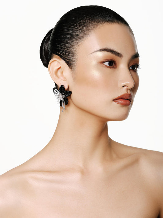 Plum Blossom Shape Enamel Crystal Orchid Earrings