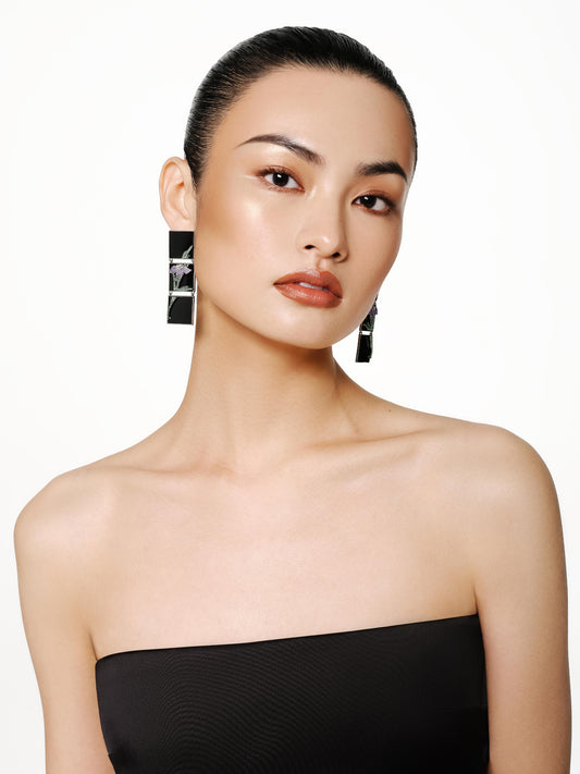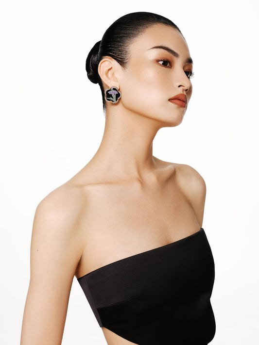 Plum Blossom Shape Enamel Crystal Orchid Earrings