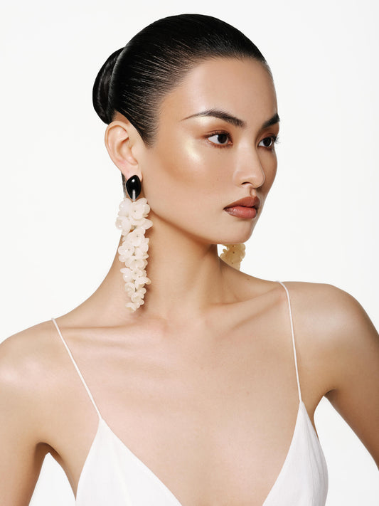 White Glass Floral Strand Earrings