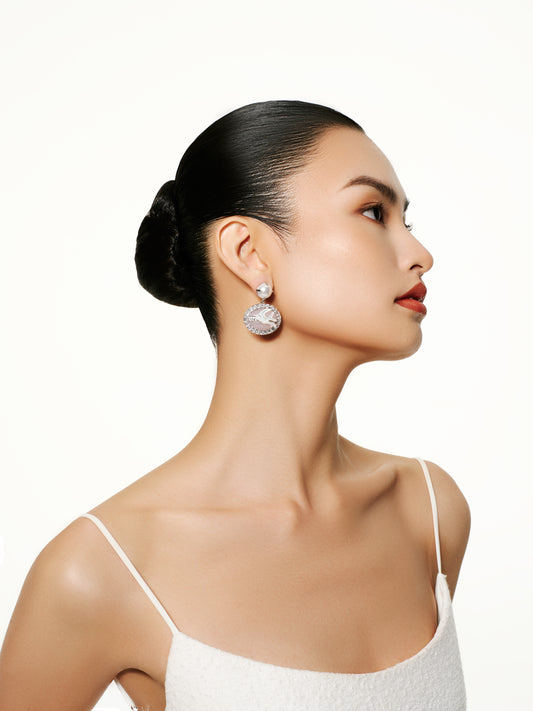 Mother-of-pearl Swallow Overlaid with Pink Glass Pearl Earrings