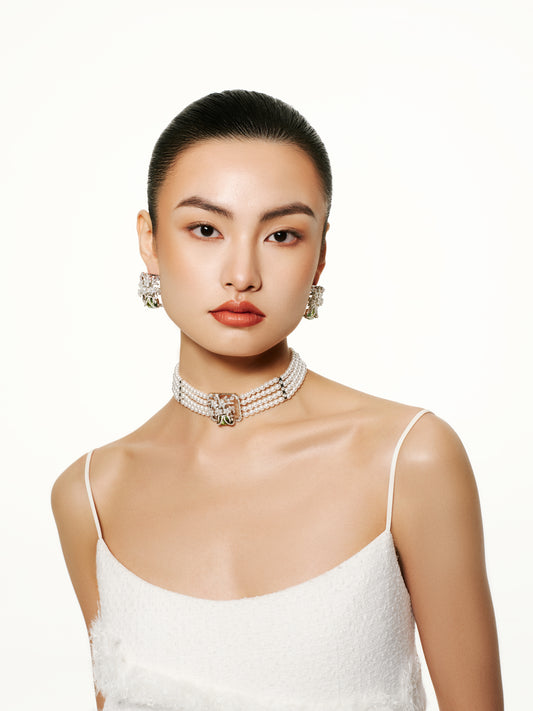 「Ingenious Linglong Narcissus」 Emeralds & Agate Detachable Pearl Necklace